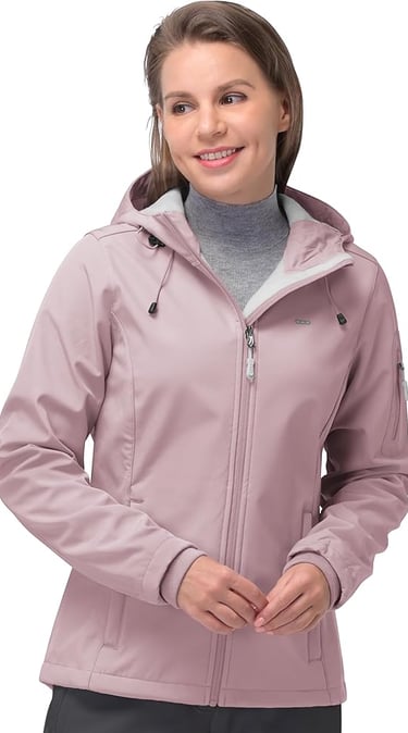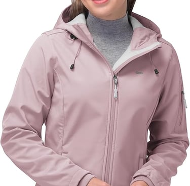 33,000ft Women's Softshell Jacket, Fleece Lined Warm Jacket Light Hooded Windproof Coat for Outdoor Hiking