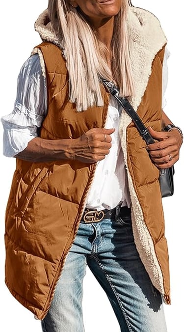 PRETTYGARDEN Womens 2024 Fall Reversible Vests Sleeveless Fleece Jacket Zip Up Hoodie Pockets Long Warm Winter Coat Outerwear